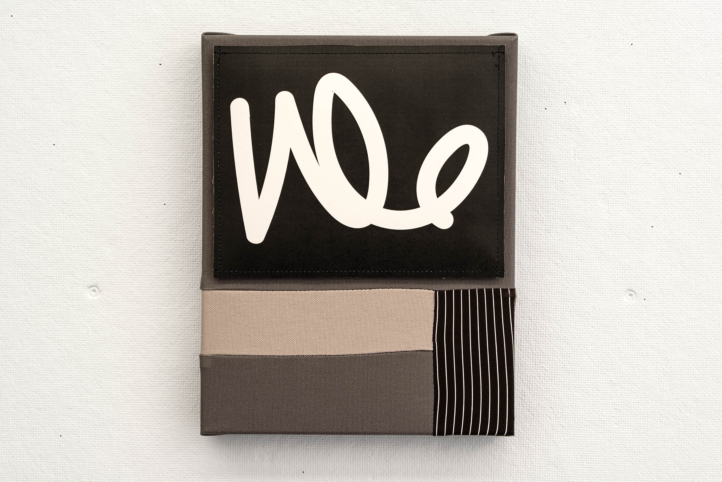 Untitled (white mark on black) - Mixed media on canvas, 2024, 9.25" x 11.75”